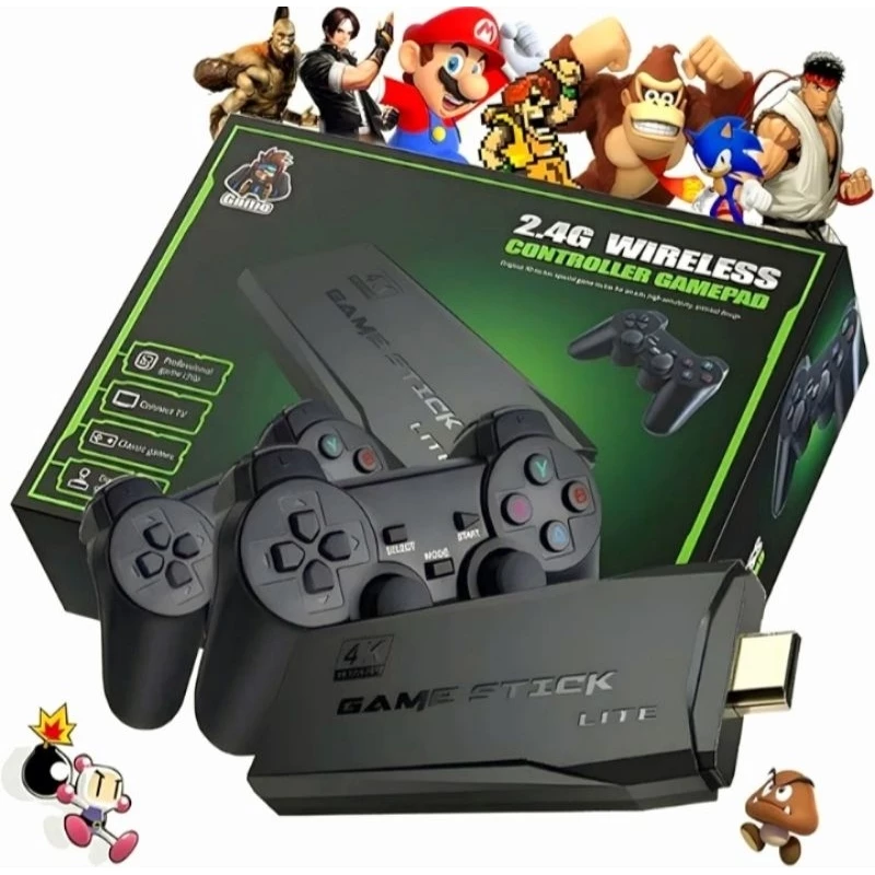 Game Stick Retrô 4K com até 10.000 jogos clássicos, controles sem fio e saída HDMI. Transforme sua TV em um console retrô completo.