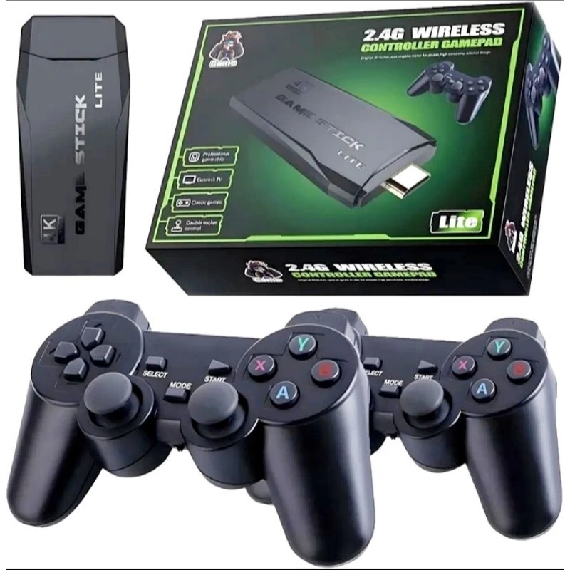 O game stick acompanha 2 controles wireless com conexão 2.4GHz, garantindo liberdade total durante a jogatina.